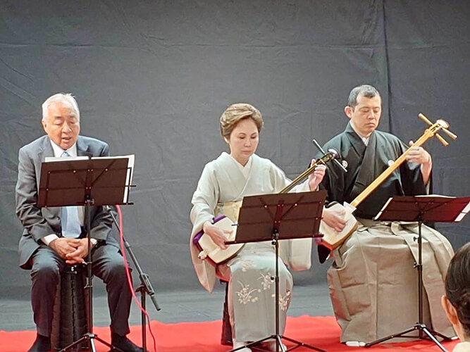 端唄の﨑侏五郎率いる「江戸端唄祭~春の宴~」が3月28日、東京・浅草公会堂和室で開かれ門弟やゲスト出演者が、これまで学んできた自慢のノドや三味線の腕前を披露した。
