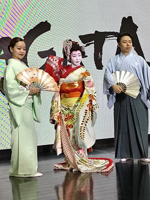 HANAGATAは日本舞踊の魅力を国の内外に発信しようと、2023年にスタートした。同劇場で大衆演劇公演がない時に、日本舞踊の魅力を発信している。メンバーは花柳寿紗保美、藤間涼太朗、若柳杏子の若手実力派揃い。公演では四季折々に合わせた日本舞踊を披露しているほか、扇の持ち方、使い方なの指導もしており、内外の観光客にも人気だ。公演の後には、出演者との写真撮影などもあり、認知度は高まりつつある。